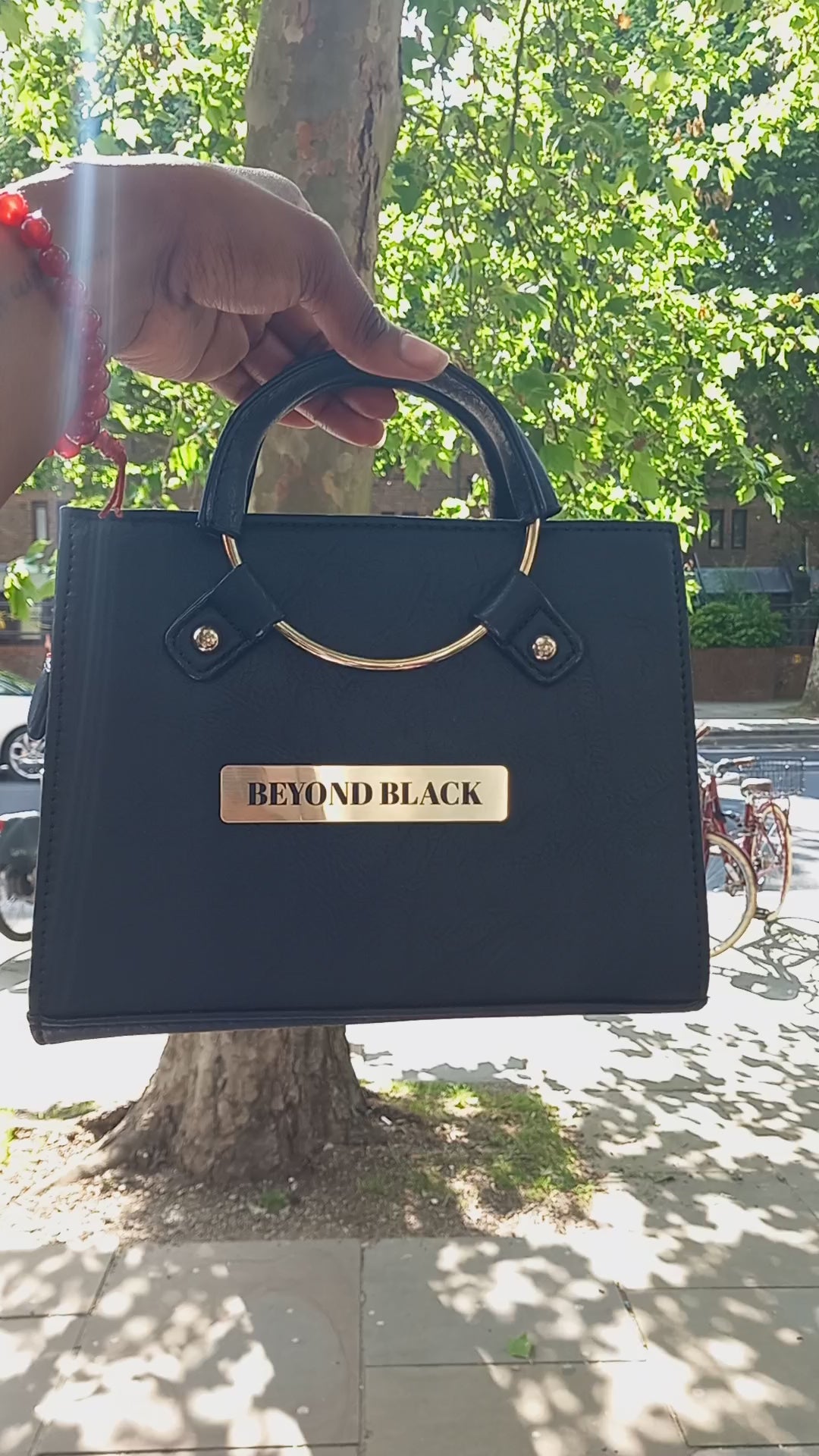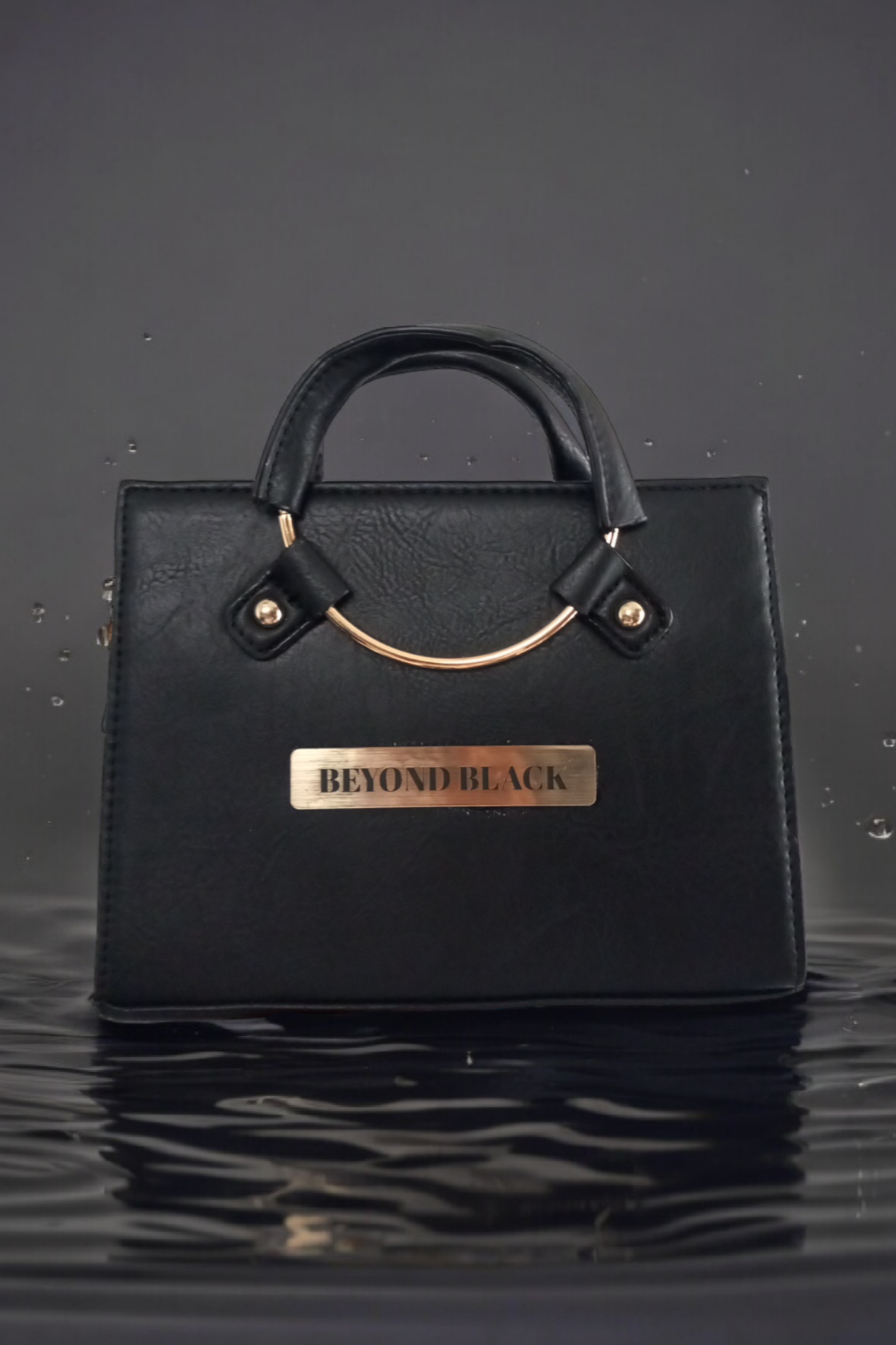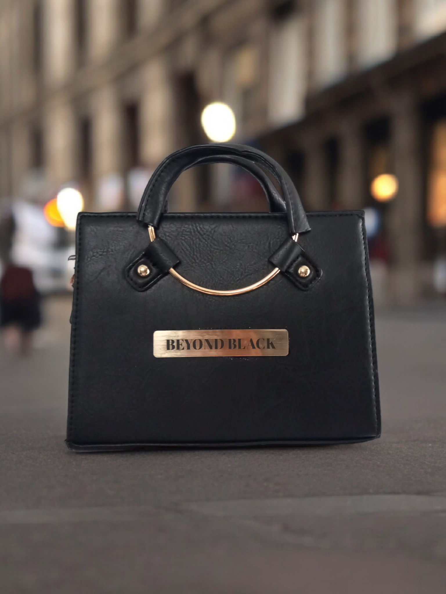 Upgrade your style with this chic faux-leather bag! The luxurious gold decal adds a touch of elegance to any outfit, making it the perfect accessory for any occasion.